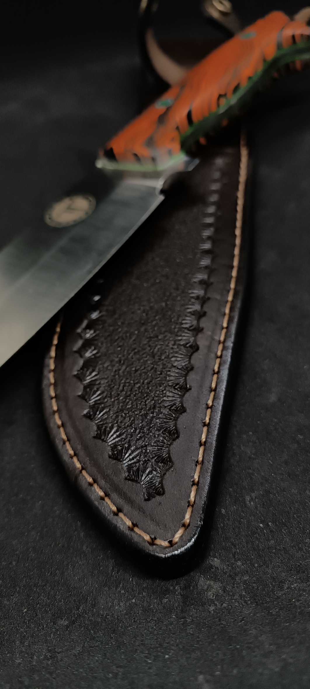 El Dikimi Deri Kılıf: Sap rengiyle uyumlu, %100 el yapımı dana derisi kılıfı, bıçağınızı güvende tutarken şıklığınızı da tamamlar.